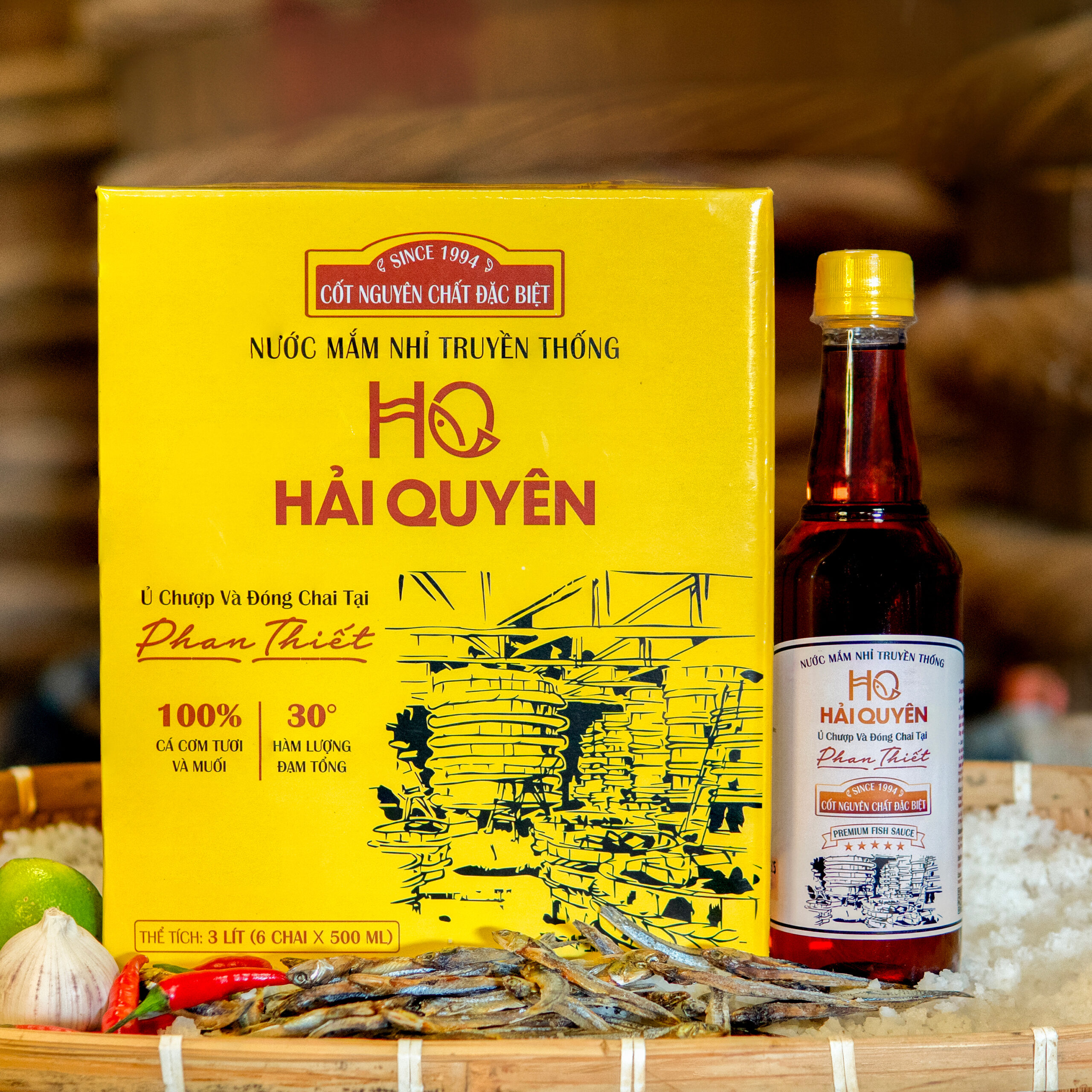 Chắt lọc từ 100% cá cơm tươi và muối, với bí quyết gia truyền, được ủ chượp theo phương pháp truyền thống tự nhiên đạt tiêu chuẩn HACCP. Từ đó đã tạo ra dòng nước mắm nguyên chất cá cơm mang hương vị ĐẬM ĐÀ THƠM NGON – TINH KHIẾT BỔ DƯỠNG.